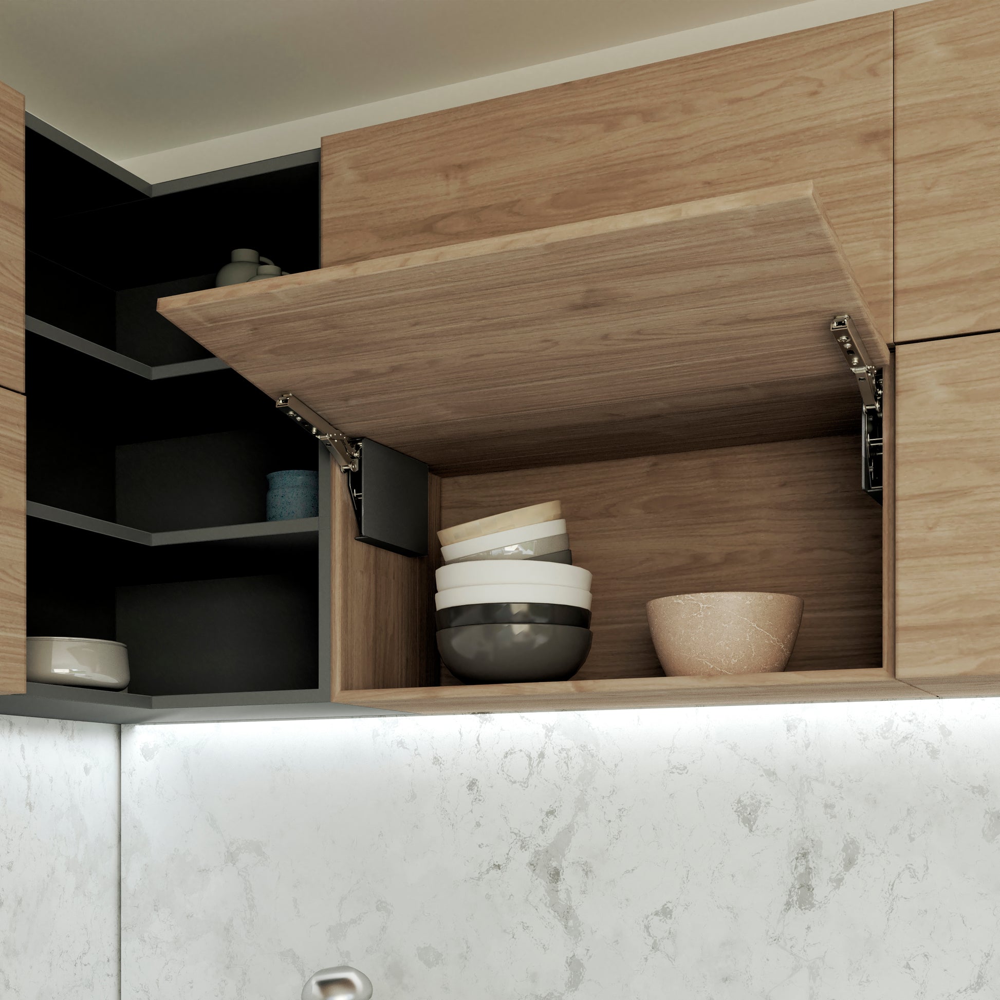 Il sistema di braccetti Altius Lift per ante elevabili è stato progettato per offrire una soluzione avanzata nell'arredamento della cucina e della casa. Grazie al suo meccanismo privo di cerniere, questo sistema consente un movimento fluido e controllato, ideale per gli spazi in cui l'ergonomia e l'estetica sono fondamentali.
