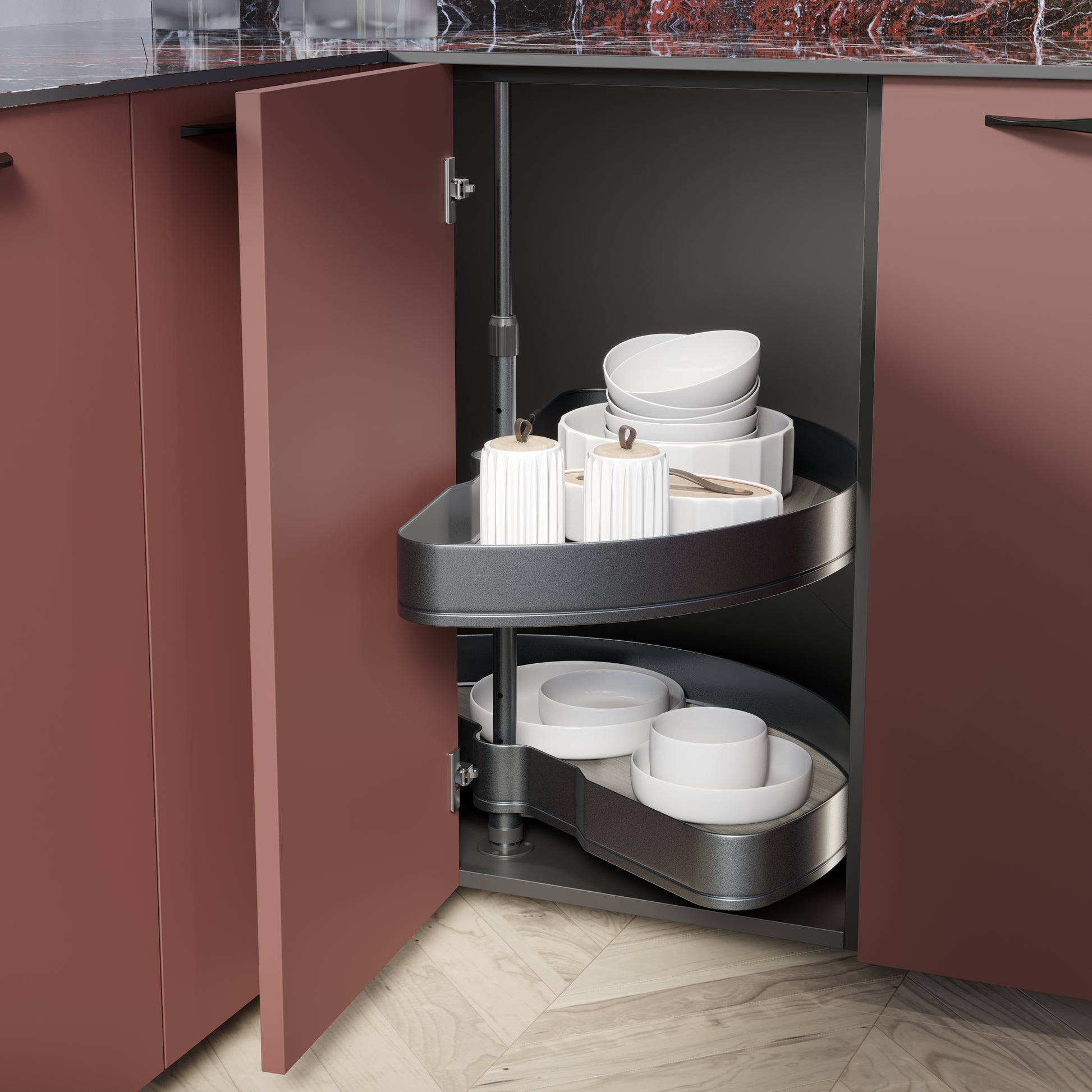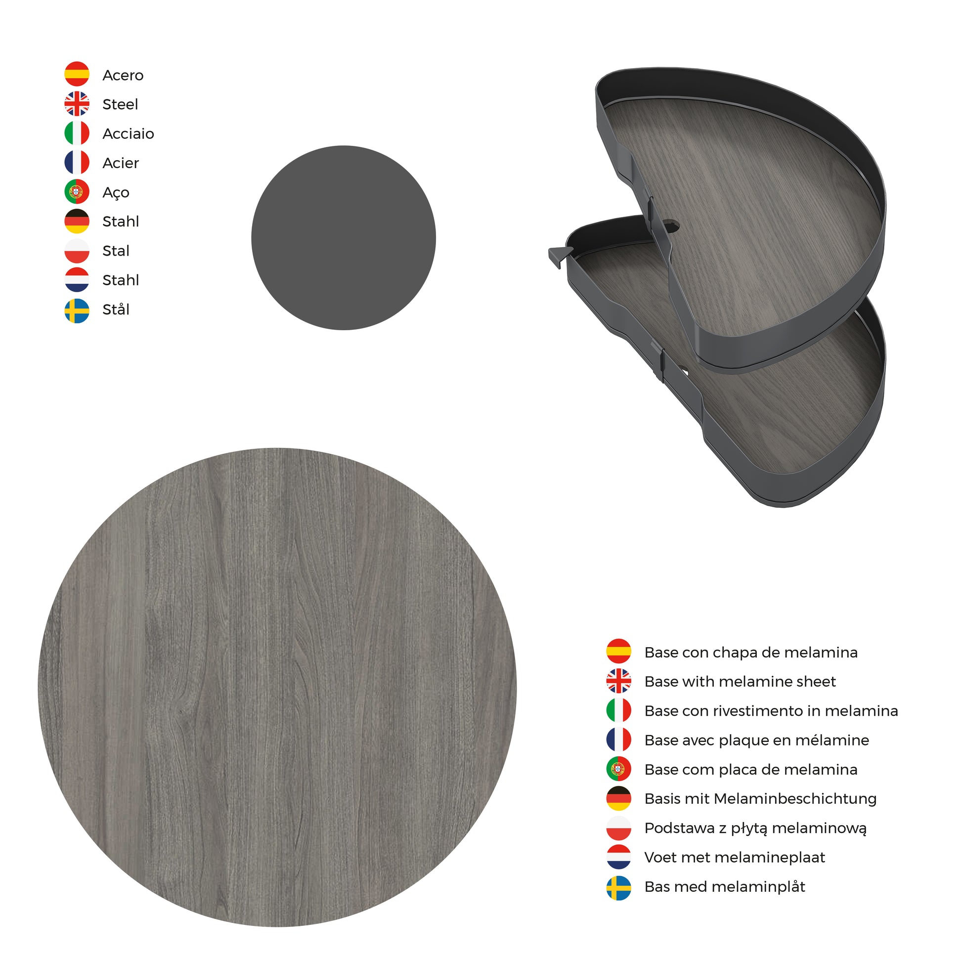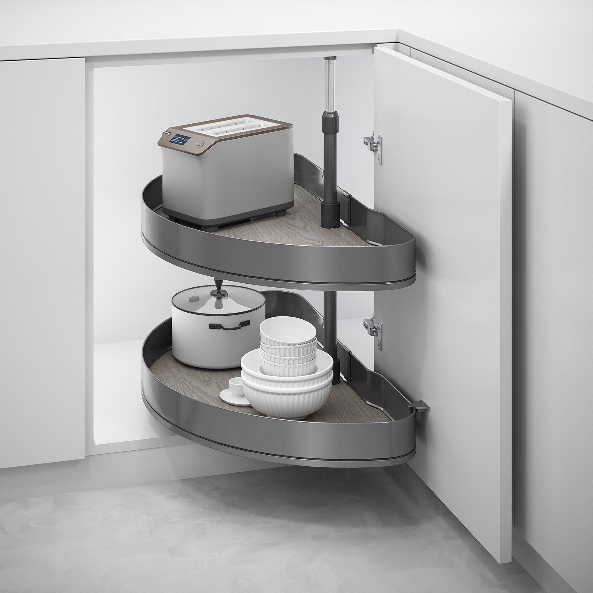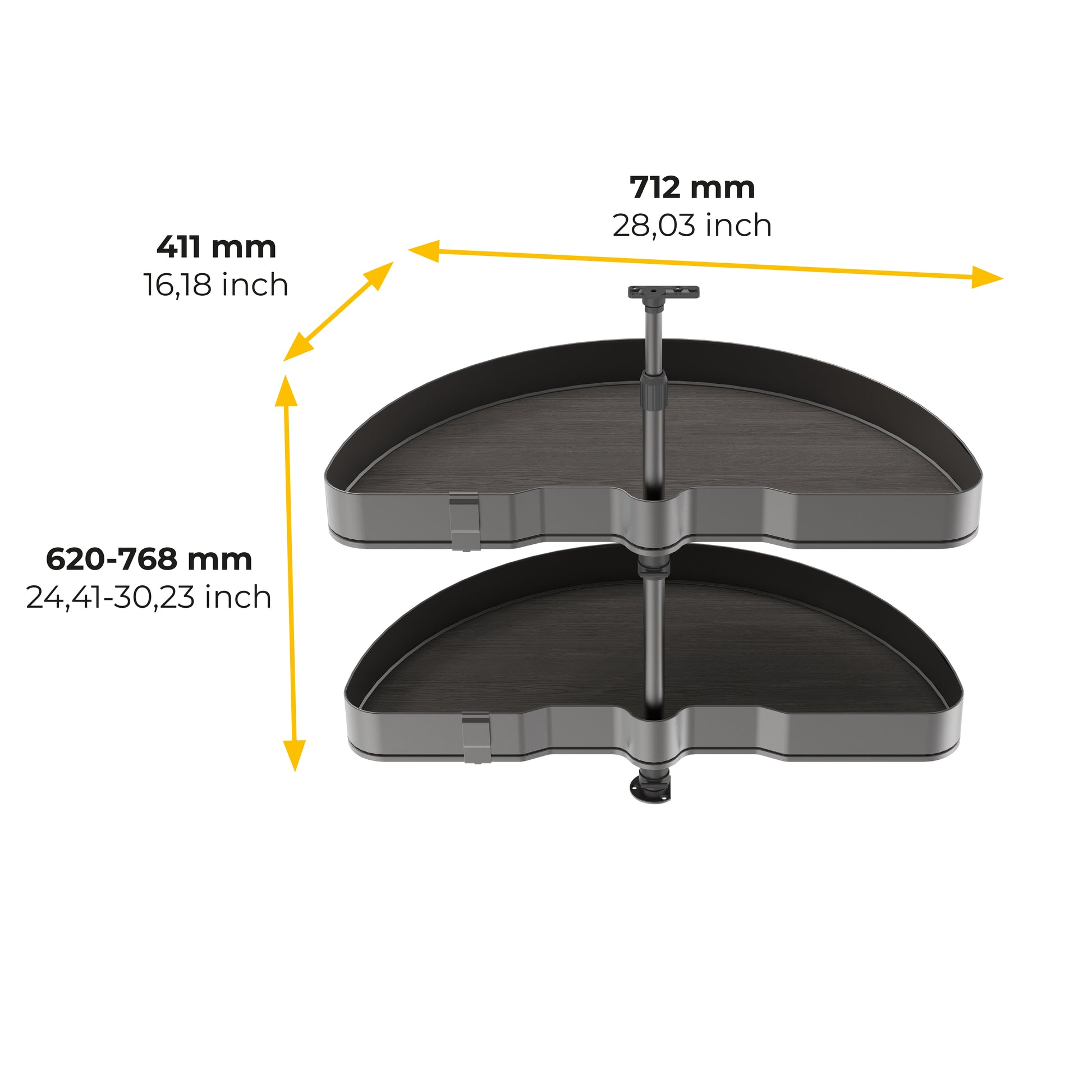 Emuca Coppia di cestelli girevoli Harmony semicircolare, Modulo larghezza 800mm, Altezza regolabile, Acciaio e Legno, Grigio antracite