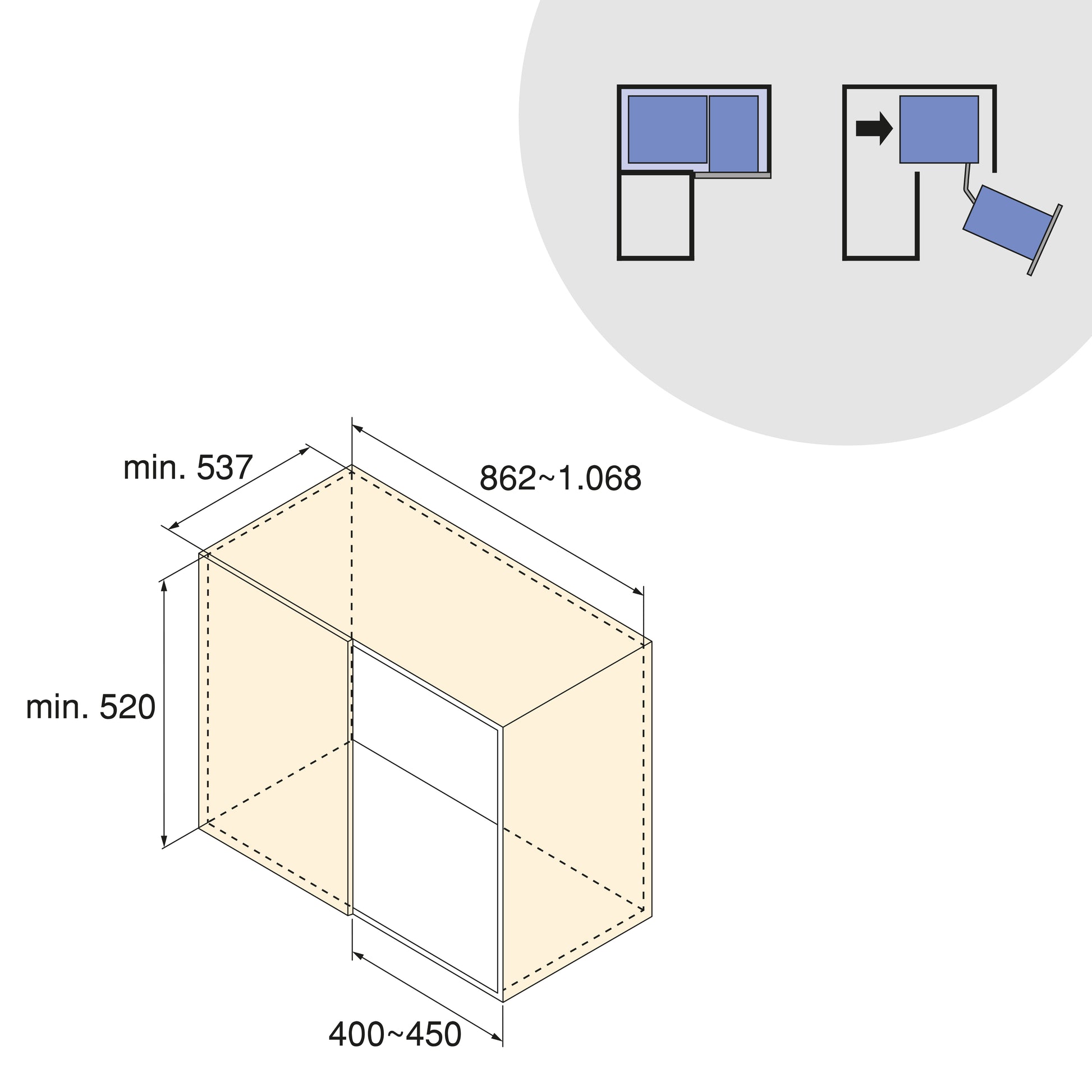 Con questo sistema angolare estraibile, ogni angolo diventa un’opportunità per guadagnare ordine, accessibilità e design, poiché può essere installato in moduli con larghezza compresa tra 900 e 1.100 mm, profondità minima di 537 mm e altezza minima di 520 mm. Adatto a pannelli con spessore di 16, 18 o 19 mm, per un’integrazione versatile in diversi design di cucina.